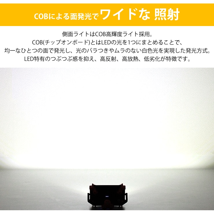 側面ライトはCOB高輝度ライト採用。