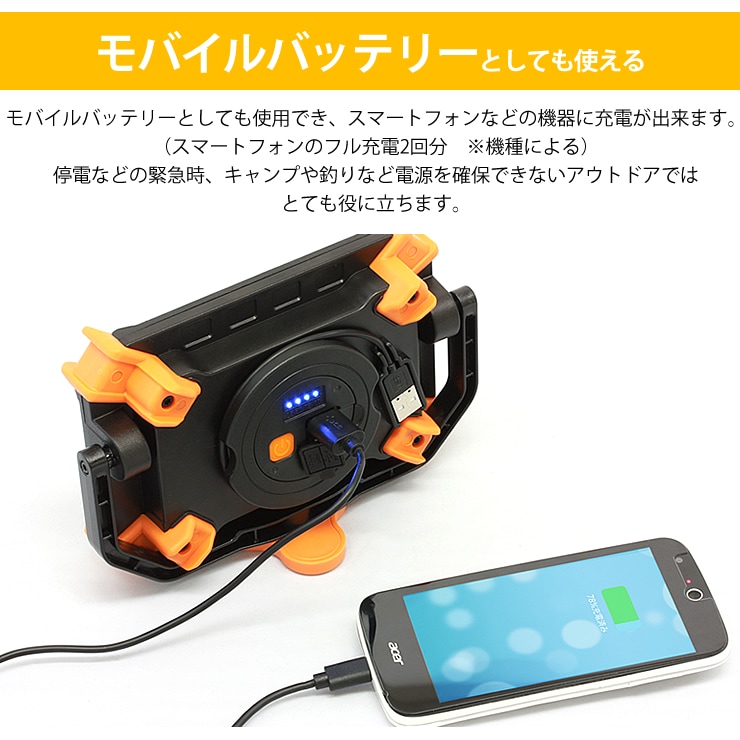 モバイルバッテリーとしても使用でき、スマートフォンなどの機器に充電が出来ます。