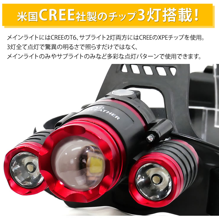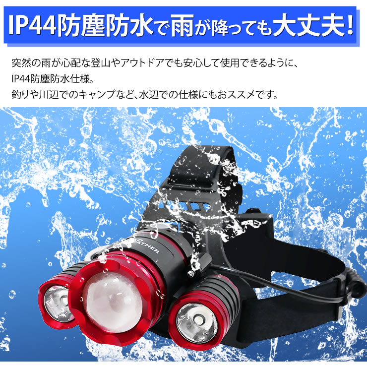 登山・ハイキング > ヘッドライト [アメリカの高性能 CREE社製チップ & センサー搭載] 3灯 LEDヘッドライト 充電式 防塵・防水 LED ライト 軽量 小型 強力 高輝度 防災 災害 グッズ キャンプ アウトドア 登山 アウトドア用品 キャンプ用品 釣り 作業用 散歩 林業 農業 ラドウェザー