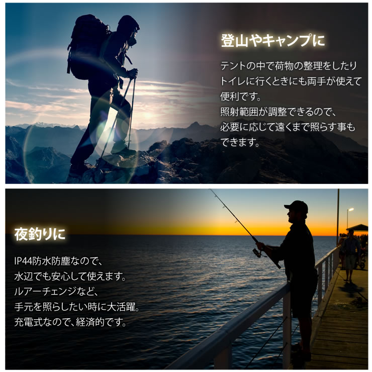 登山で遠くまで照らしたい時は正面、とシーンに合わせて使いわけられます。